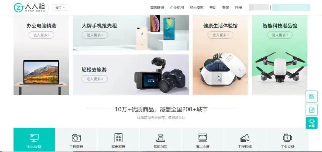 在如今的人人租平台上,交易品早已从最初的数码3C,发展到如今涵盖摄影航拍、医疗器械、企业办公等领域用品,平台已成功将过去的租赁模式复制到多元化场景。